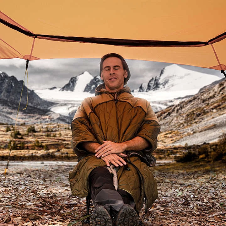 Aikuinen 4-in-1 ulkoautopussi, kuiturakenne puuvillapeitteellä ja pehmeällä puuvillaflanellivuorella maksimaalisen lämmön ja mukavuuden saavuttamiseksi.