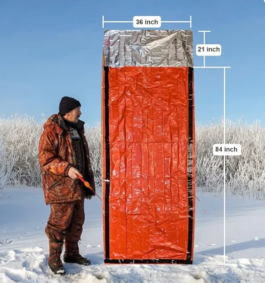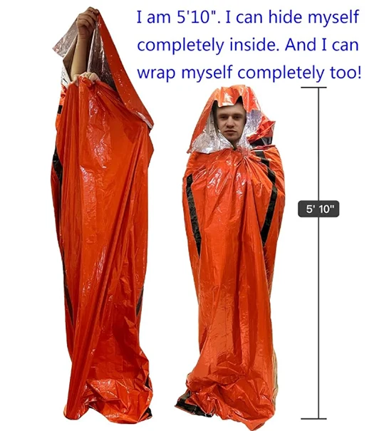 Hätätilanteessa asumispussi voi lisätä selviytymismahdollisuuksiasi kaikilla säällä, kaikilla vuodenaikoilla ja kaikilla olosuhteilla. Se on valmistettu kestävästä eristävästä Mylar -materiaalista, jonka NASA on suunnitellut avaruustutkimukseen. Se säilyttää / heijastaa 90% kehon lämmöstä. Se on uudelleenkäytettävä, vedenpitävä ja tuulenpitävä.