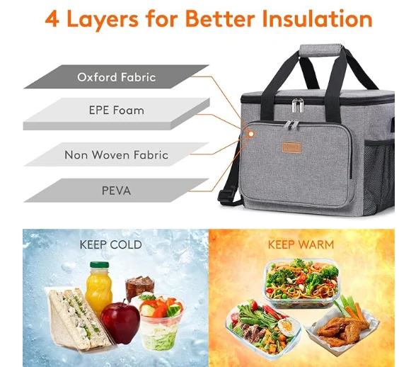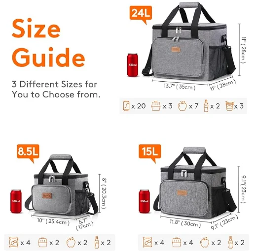 Suuri kapasiteetti: Mitat - 13,8 "(35 cm) × 11" (28 cm) × 11 "(28 cm). Aikuisten lounaslaatikon enimmäiskapasiteetti on 24L, ja on tarpeeksi tilava säilyttämään 40 tölkkiä koksia (330 ml) tai lounastasi, kuten voileipiä, salaattia, välipaloja, juomia ja hedelmiä.
