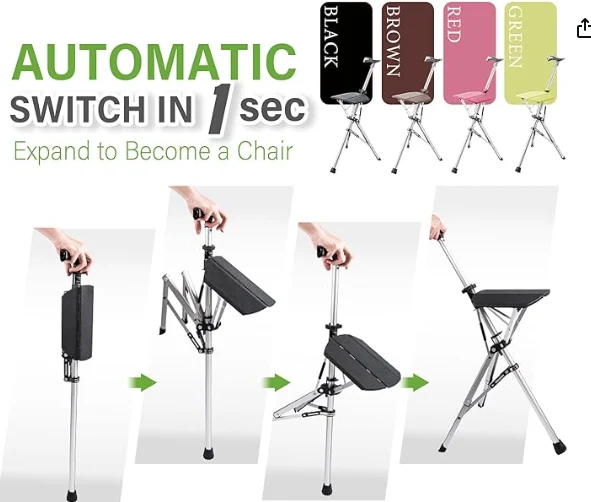 Vanhat miehet Alpenstock vaellus sokeriruo'o, lepo ja retkeilykeppi tukea varten. Tämä malli, joka muuntaa heti retkeilypaikan tuolilla napsautuksella, tarjoaa lepoa väsyneille jaloille ja polville hetkessä.